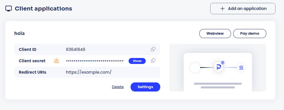 Once the application is created, Powens provides you with a client_id and a client_secret.