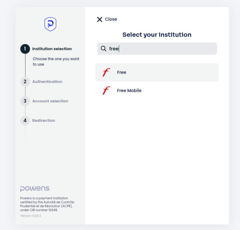 The first step is to register myself in https://console.powens.com, actvate the Free Mobile “connector” and follow the workflow to create an “application”.