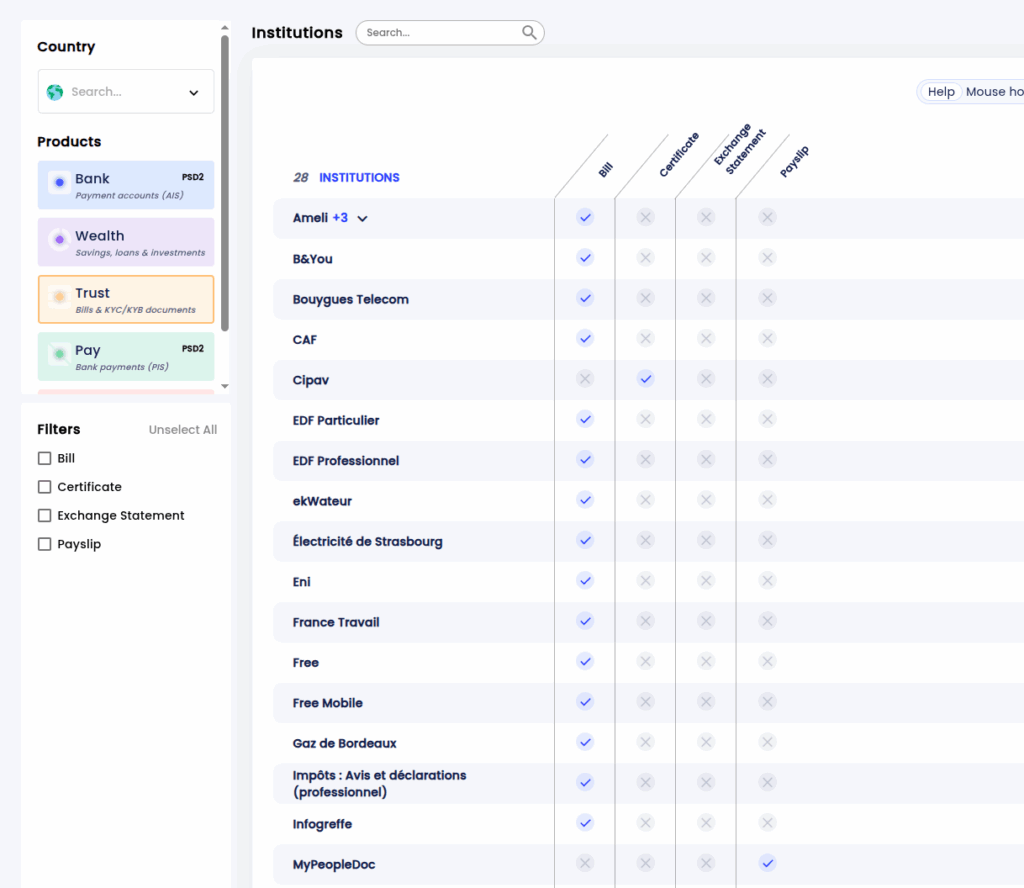Powens is a company known for OpenBanking solutions, mainly the aggregation of user banking transactions and financial assets, but it also has a product called “Trust” that allows you to download periodically documents from your Banks, Government Authorities, Utility companies etc.